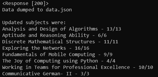 Learning and creating a web server with flask was relatively easy and took me no time to figure things out. I created two endpoints, one to respond to any messages that were sent to the Bot and was also set up as a web hook for the bot after deployment, so that Telegram could make requests to it and the second endpoint which could be called manually to send the data related to the classes and attendance. The second end point is also the one, which I used to automate my attendance. Once, all of this was done, I deployed the flask server on Heroku.